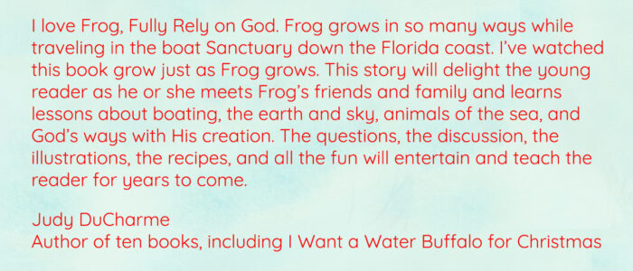 Join Frog and friends as they learn to face challenges with confidence and faith. From stormy weather and boat engine trouble, to dolphins, and homeschooling, each chapter is filled with joy, gratitude, and important life lessons.